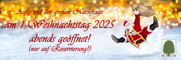 Am 1. Weihnachtstag abends haben wir auch geöffnet. Reservierungen nehmen wir gerne an!